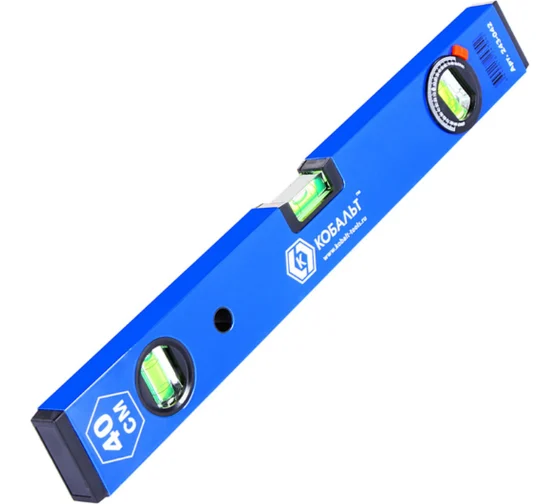 Уровень строительный КОБАЛЬТ Комфорт, МАГНИТНЫЙ 400 мм, профиль 20 x 49 мм, 3 глазка из них 1 поворотный, точность 1,0 мм/м 243-042