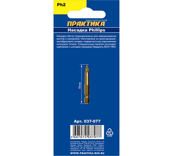 Бита PH-2 Эксперт (1 шт; 50 мм) ПРАКТИКА 037-077