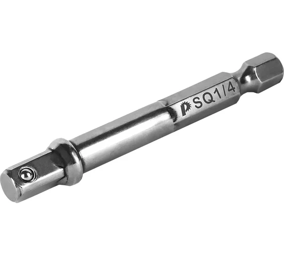 Адаптер предназначен для шуруповертов. Применяется для установки торцевых головок. Обеспечивает переход с шестигранного типа крепления на крепление - квадрат с подпружиненным шариком.