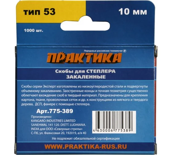 Скобы для степлера (1000 шт; 10х0.74х11.4 мм) ПРАКТИКА 775-389