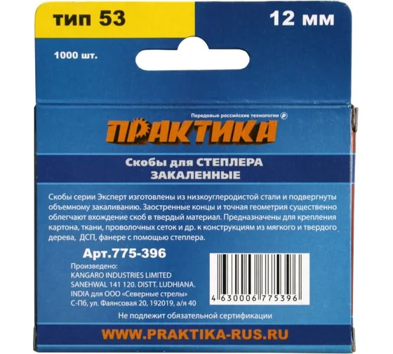 Скобы для степлера (1000 шт; 12х0.74х11.4 мм) ПРАКТИКА 775-396