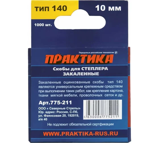 Скобы для степлера (1000 шт; 10х1.2х10.6 мм) ПРАКТИКА 775-211