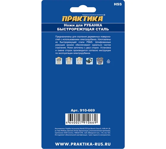 Нож для рубанка (110х29х3 мм, 2 шт, для 1911) ПРАКТИКА 910-669
