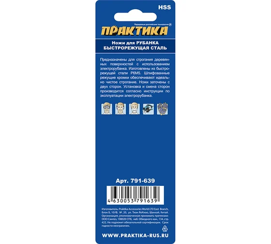 Нож для рубанка 110х5.5 мм, быстрорежущая сталь HSS, 2 шт ПРАКТИКА 791-639