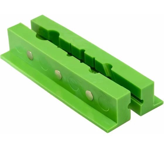 Губки магнитные с канавками крепятся к стандартным стальным губкам тисков при помощи неодимовых магнитов. Применяются для фиксации цилиндрических деталей при ремонте ювелирных изделий, мелких механизмов и узлов электроники, бытовой техники, часов, детских игрушек. Изготовлены из полиуретана, обладающего достаточной эластичностью, что позволяет избежать мелких царапин и вмятин на деталях во время фиксации.
