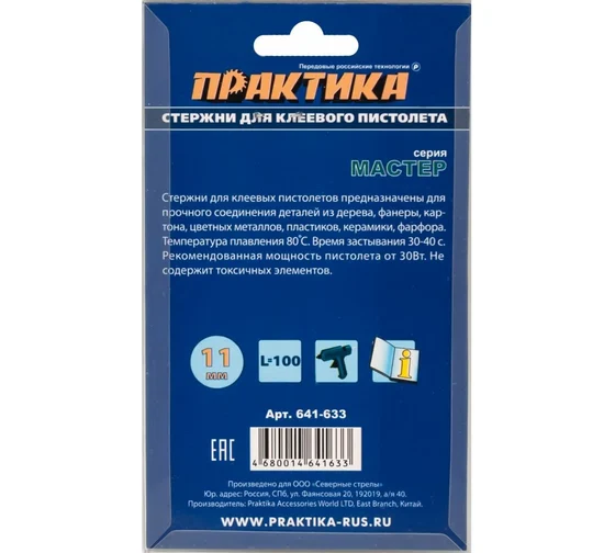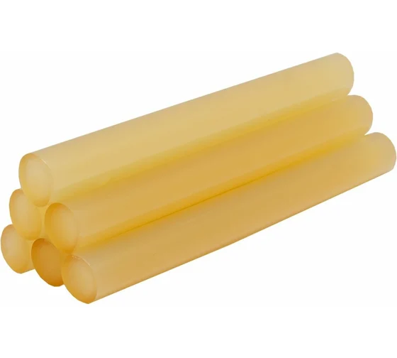 Клей желтый, прозрачный (6 шт; 11х100 мм) для клеевого пистолета предназначен для прочного соединения деталей из дерева, фанеры, картона, цветных металлов, пластиков, керамики, фарфора. Температура плавления 80°С. Время застывания 30-40 с. Рекомендованная мощность пистолета от 30 Вт. Не содержит токсичных элементов.