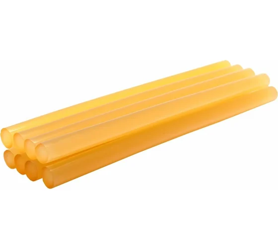 Клей желтый, прозрачный (8 шт; 11х200 мм) для клеевого пистолета предназначен для прочного соединения деталей из дерева, фанеры, картона, цветных металлов, пластиков, керамики, фарфора. Температура плавления 80°С. Время застывания 30-40 с. Рекомендованная мощность пистолета от 30 Вт. Не содержит токсичных элементов.