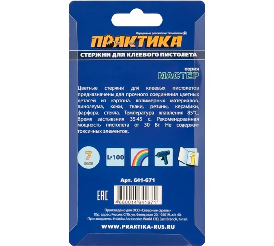 Клей для клеевого пистолета цветной (12 шт; 7х100 мм; 6 цветов) ПРАКТИКА 641-671