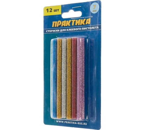 Клей для клеевого пистолета цветной (12 шт; 7х100 мм; 6 цветов) ПРАКТИКА 649-349
