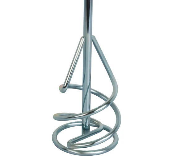 Насадки миксерные оцинкованные для гипсовых и цементно-песчаных смесей. Серия "Профи". Насадки перемешивающие по вертикали вверх с 2-мя рабочими лопастями для дрелей с высоким крутящим моментом и шуруповертов. Для перемешивания цементно-песчаных и гравийных смесей в небольших объемах.