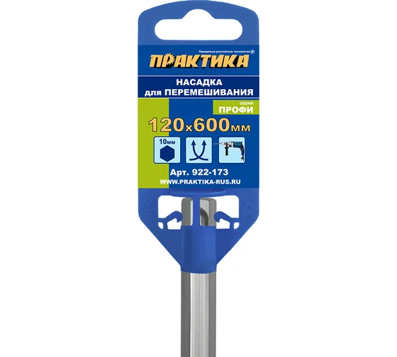 Насадка для перемешивания ПРАКТИКА хвостовик НЕХ 10, 120x600, шпаклевка 922-173