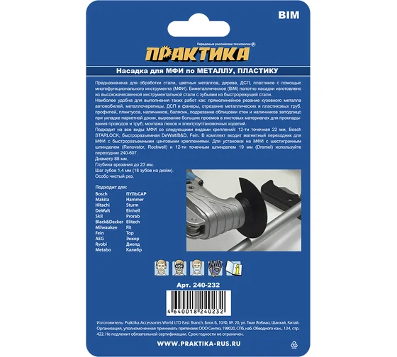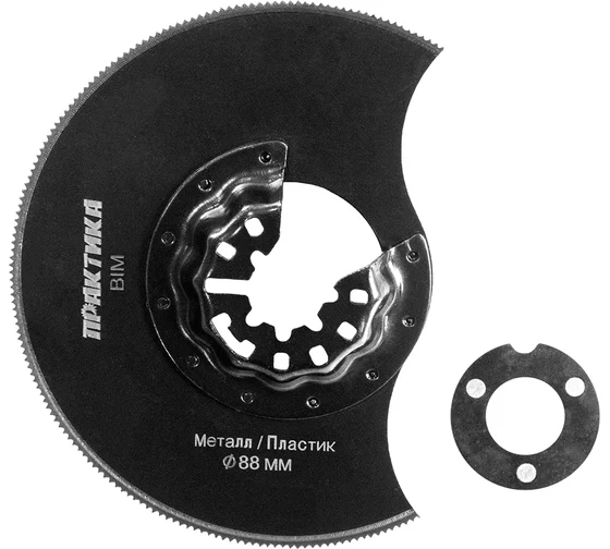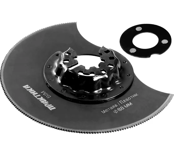 Насадка для МФИ (88 мм) используется совместно с многофункциональным инструментом. Применяется для обработки стали, цветных металлов, деревянных и пластиковых изделий, выборки пазов, отрезания труб и профилей, вырезания различных проемов в листовых материалах. Насадка изготовлена из биметалла.