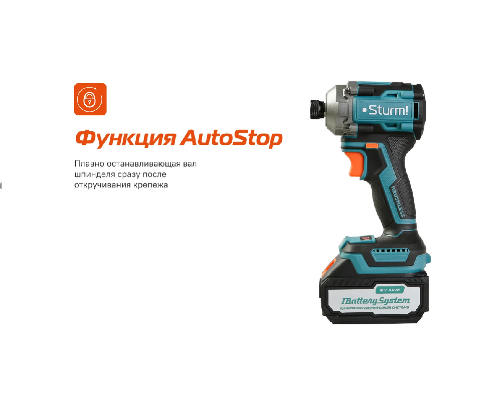 Модель оснащена функцией AutoStop, плавно останавливающей вал шпинделя сразу после откручивания крепежа. Есть LED-подсветка рабочей зоны, создающая направленный симметричный луч, а также индикатором остаточного заряда аккумулятора.