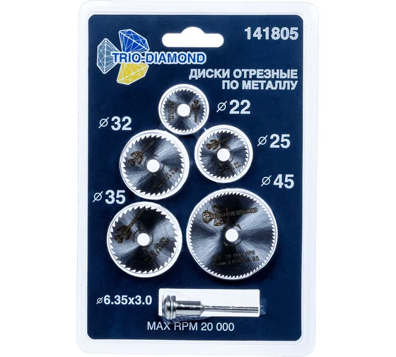 Набор пильных дисков по металлу TRIO-DIAMOND HSS 22/25/32/35/45 мм (5шт) для гравировальной машинки 141805